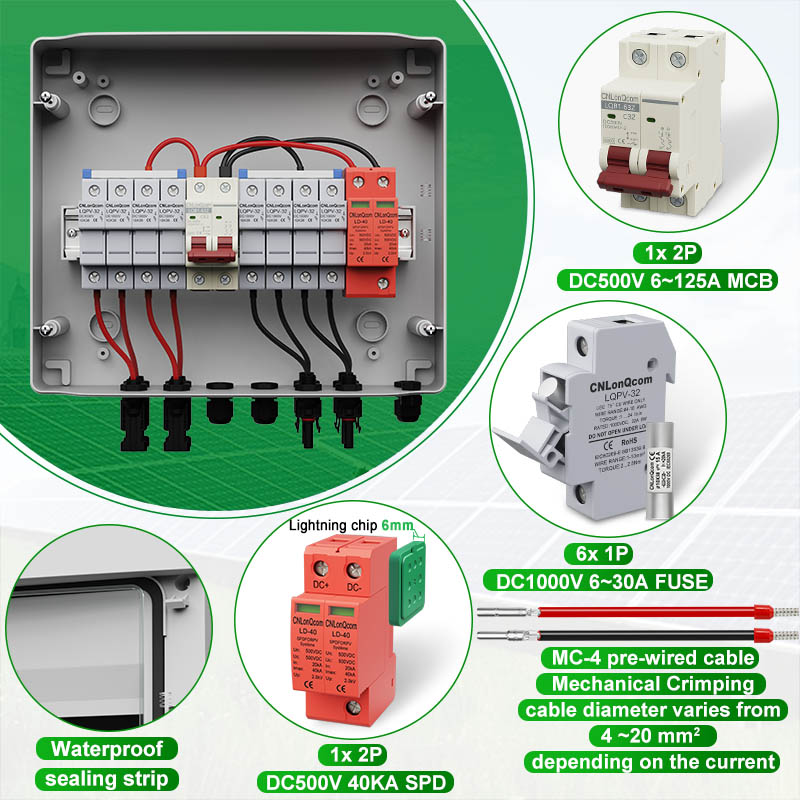 Hộp kết hợp PV nhựa HA Series của CNLONQCOM 4 trong 1 OUT DC500V/600V/800V chủ yếu được sử dụng để bảo vệ các hệ thống PV và thường được sử dụng trong các hệ thống kết nối ngoài lưới hoặc lưới. Chẳng hạn như bảng PV, RV, thuyền, PV ngoài trời, hộ gia đình, v.v.