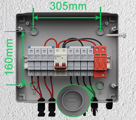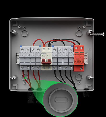 PV Combiner Hộp 4 trong 1 OUT DC500V/600V/800V bảo vệ hiệu quả các bộ biến tần và các tấm pin mặt trời khỏi thiệt hại và gửi khỏi lửa.